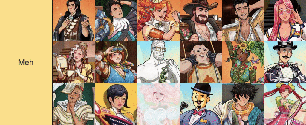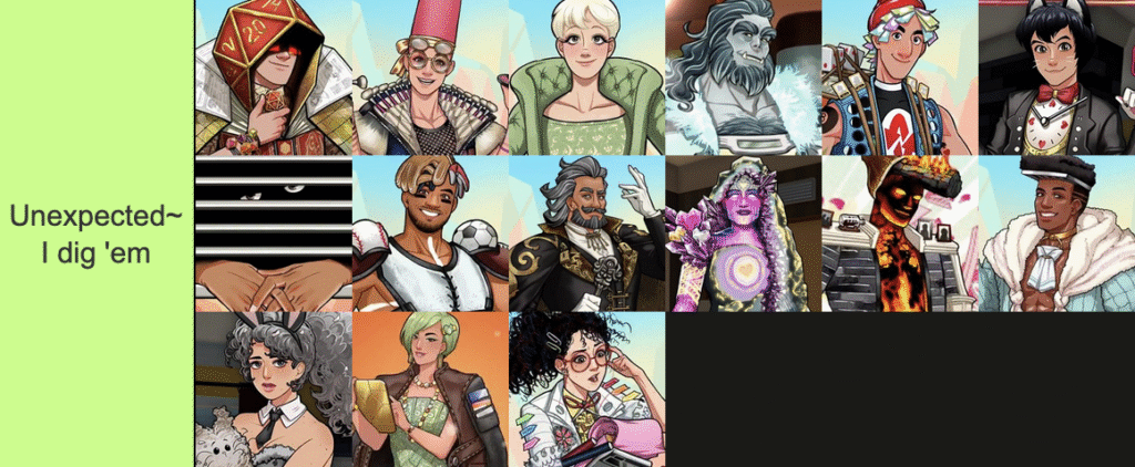 SO–here’s a breakdown of the characters categorised in groups of most liked to least liked~